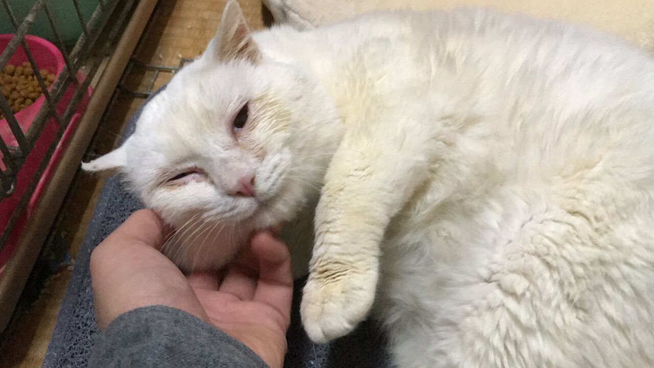 このときもお腹の虫は落ちきらず、左目も角膜炎治療中。