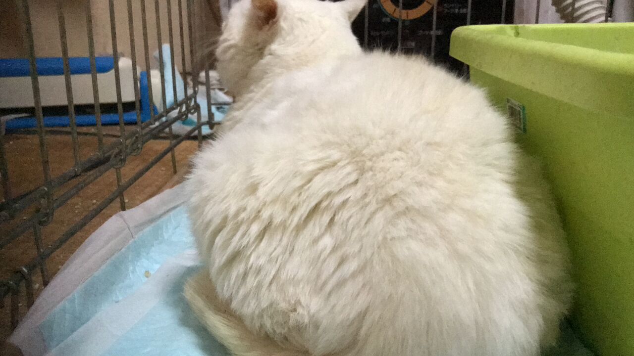 当時はケージに入れてたんですけど(今もたまに入れてますが)、ケアの時間で入ってもこういうふうにSiriを向けたままでした。