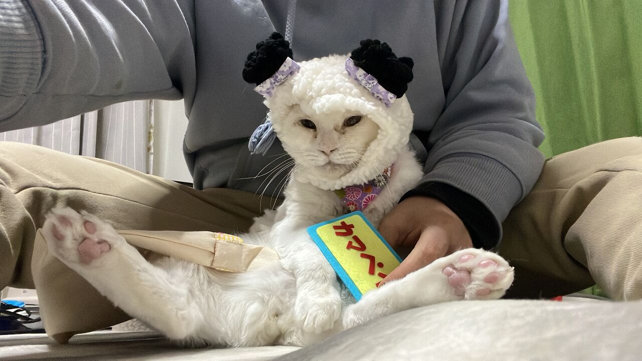 ダイエットしたのと毛質が家猫仕様になったのか、だんだんと麿白先生に寄せていってる暁璘。