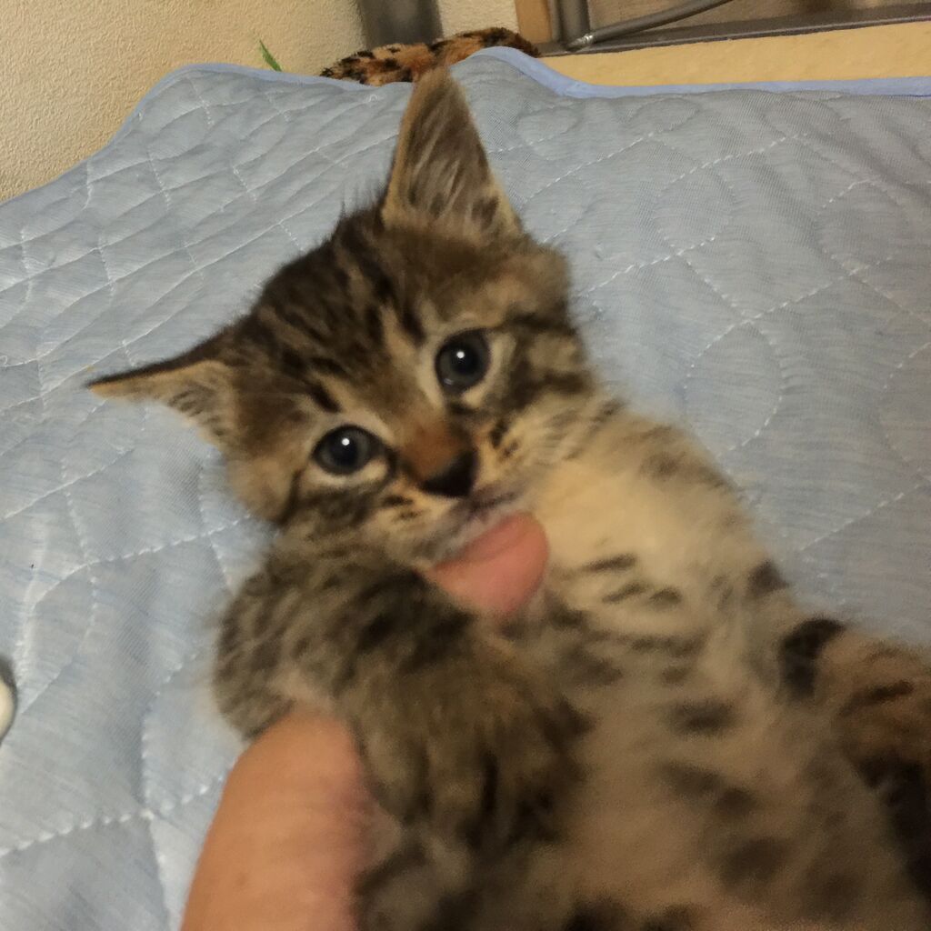 耳が上がってきててもまだタレ目だった、2021年10匹目の預かり保護子猫だった銀橙。