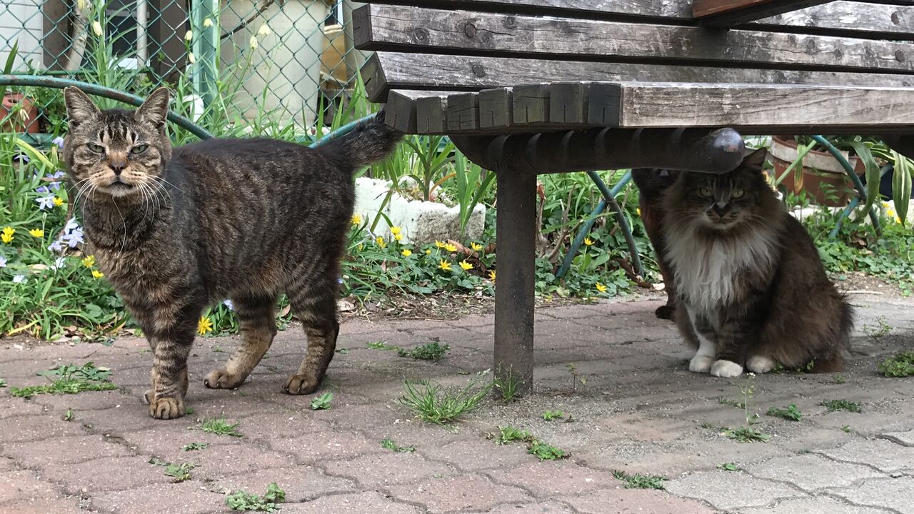 太陽が心地よいのと、野良猫たちは虫を食べてる事が多く、春になると地中の虫が出てきて足が向くのかもしれません。