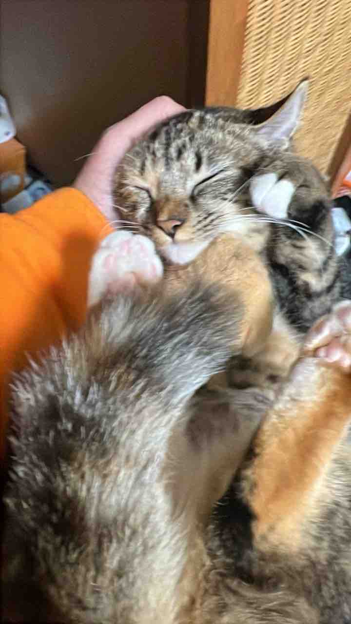 片手に頭を乗せて招き猫をするというのがまだ可能でした。