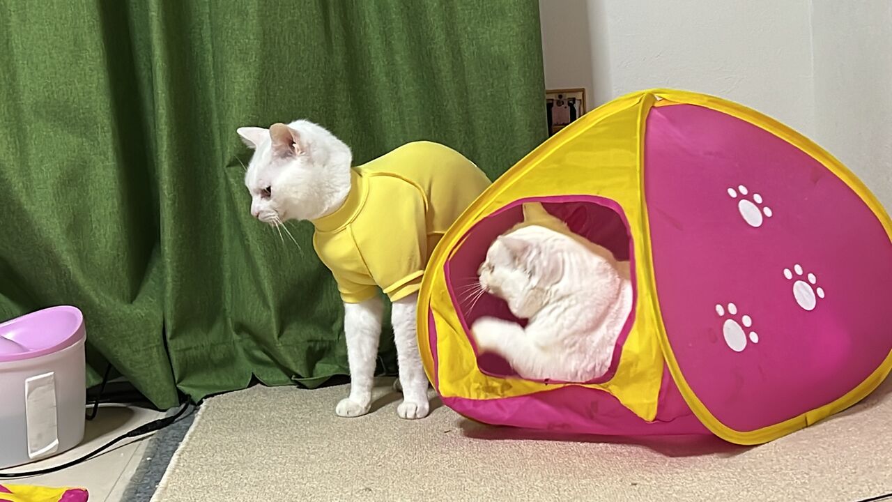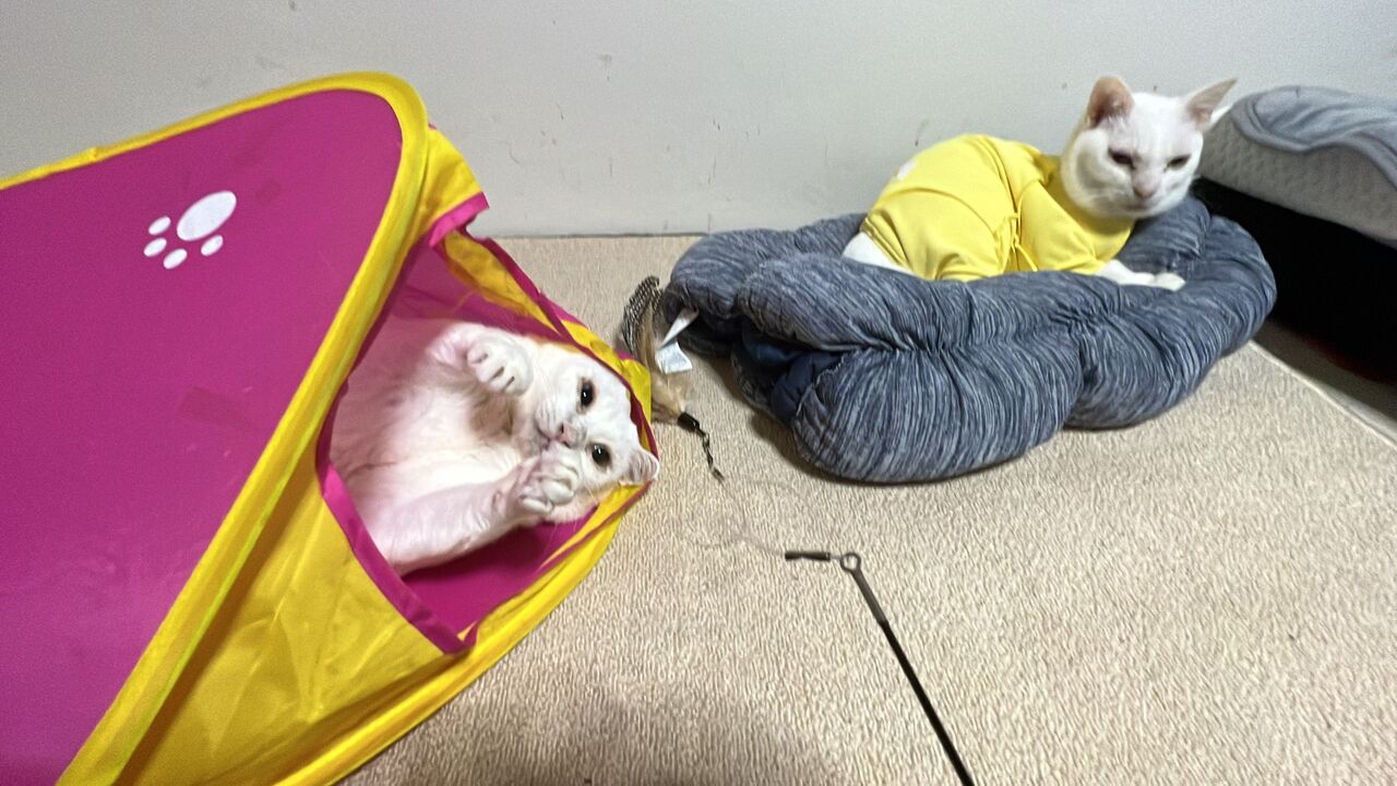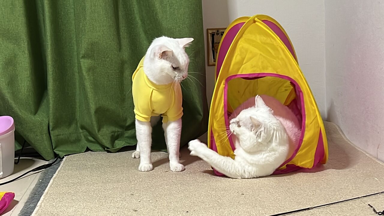 曉璘は最近、なぜか釣りおもちゃでシャー!というようにもなり、こんな感じで白猫系コンビのマロリンズ2022夏も稼働をし始めるような気がするのでした。