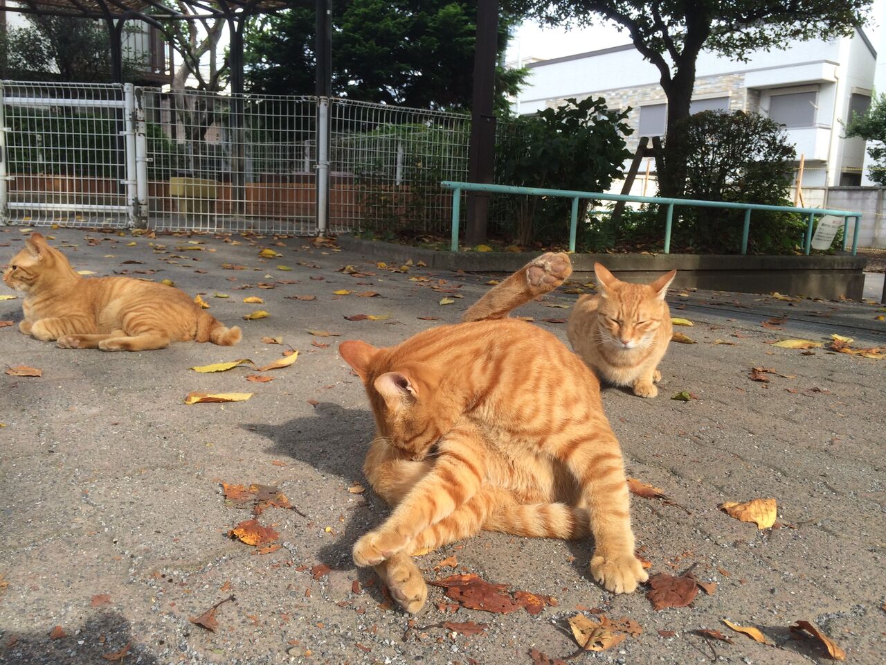 茶トラ3兄弟の光景。