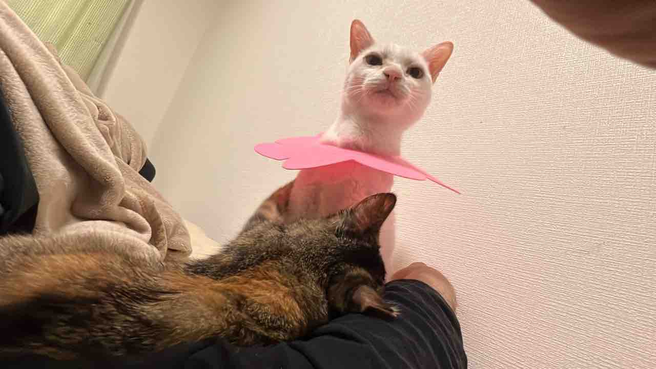 いったいこれはどういうことなんだねという顔でこっちにアピールする麿白先生。