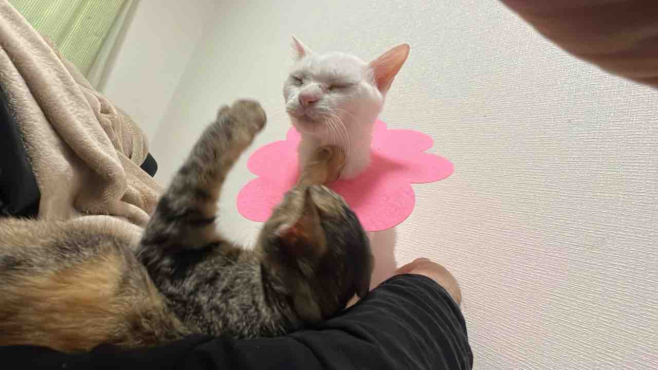 おおムギよ、口をそのまま塞ぐとは斬新だね。ならばその手をグルーミングしてあげよう。