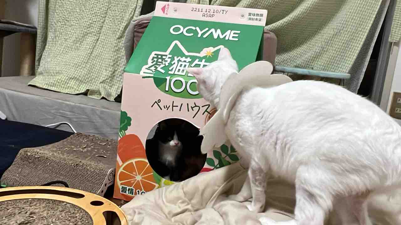 ふむ、今度は白黒ちびかい。実に珍妙な配色だね。そこはぼくの物件だから速やかに出ていくように。