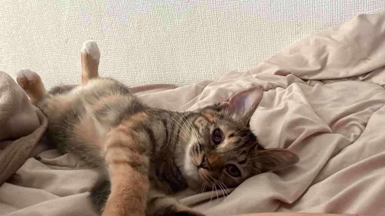 注意した後にどこかに行って、しばらくすると足にふかふかの感触を感じるとそこに控えめに寄り添う琥麦の姿が。