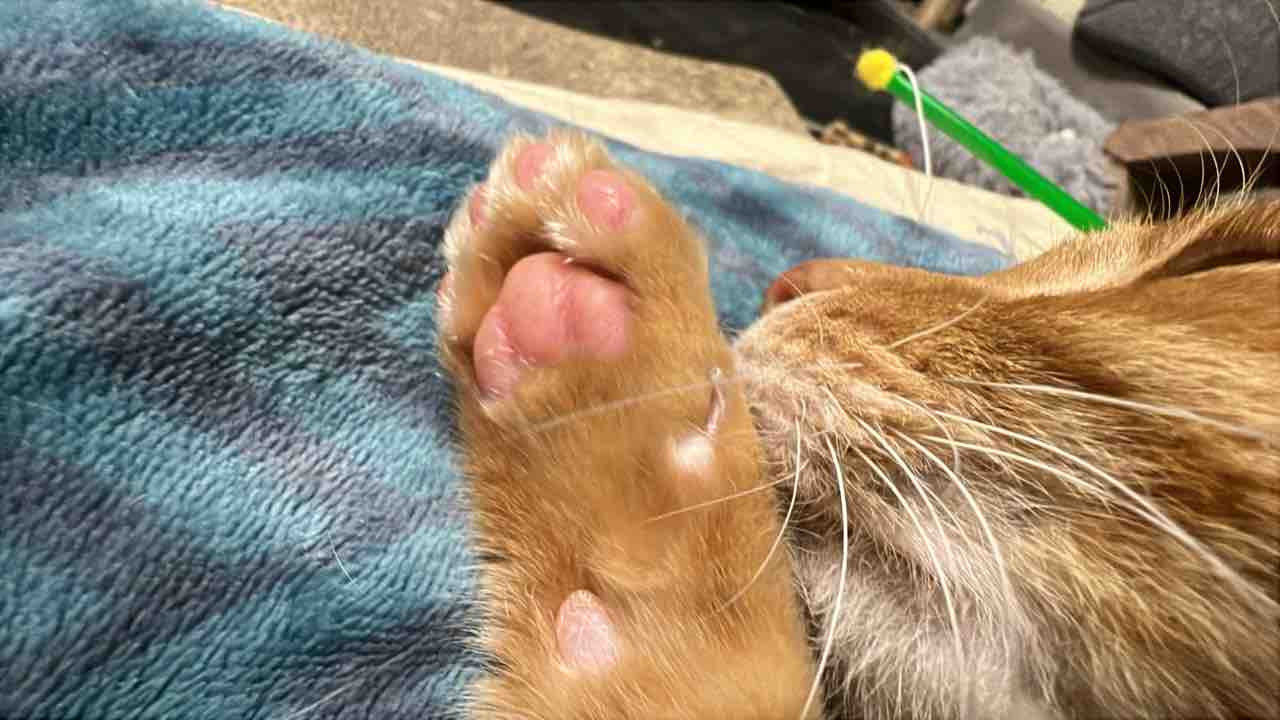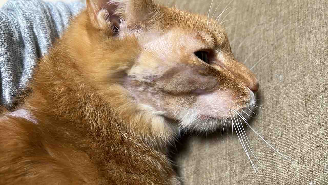 膿を抜いた顔の右側は毛を剃りましたが徐々に生えて茶トラ柄が見えてきましたね。