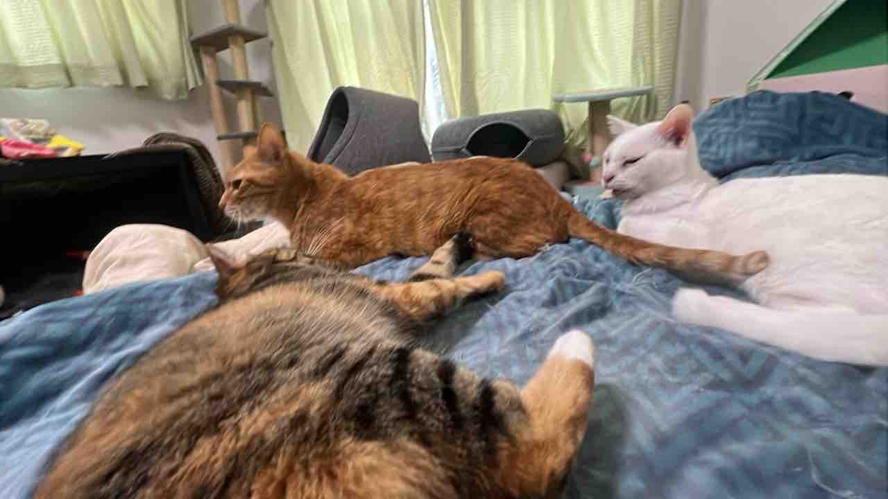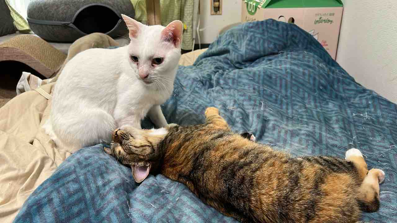まず参瑚が麿白先生と琥麦を差し置いて割り込んで甘えてきます。