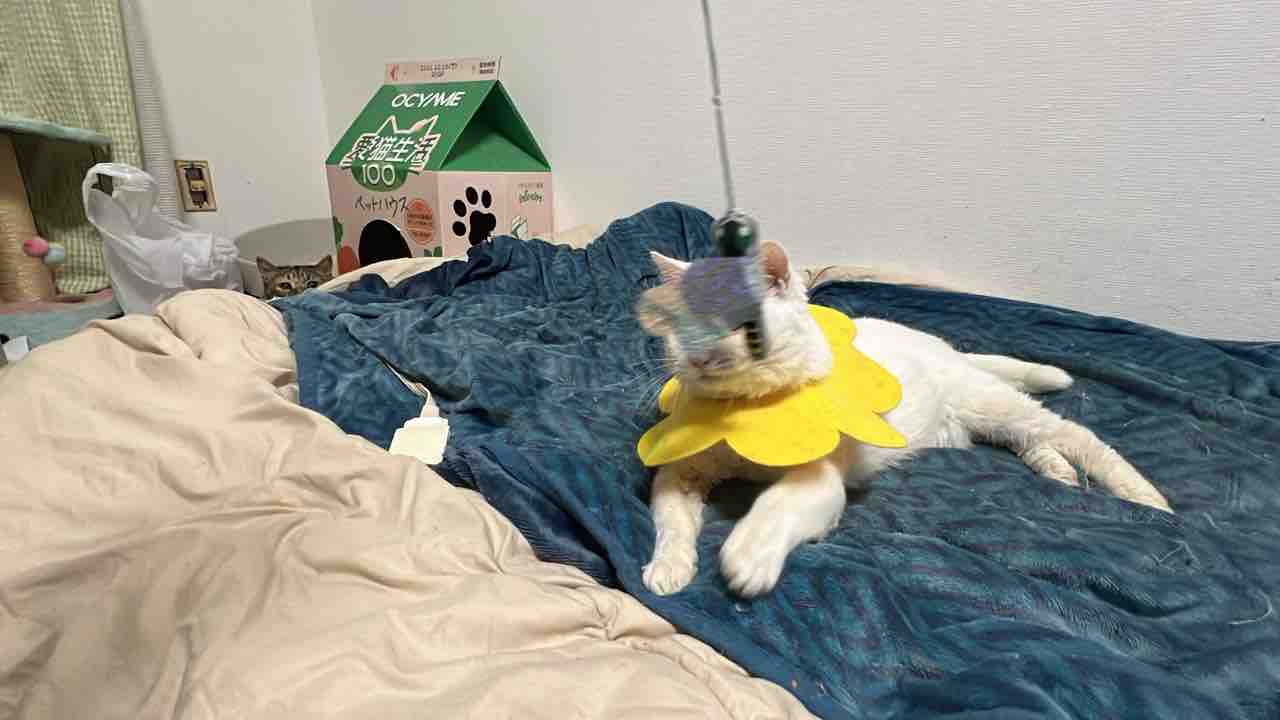 釣りおもちゃで緩慢に遊ぶ暁璘です。