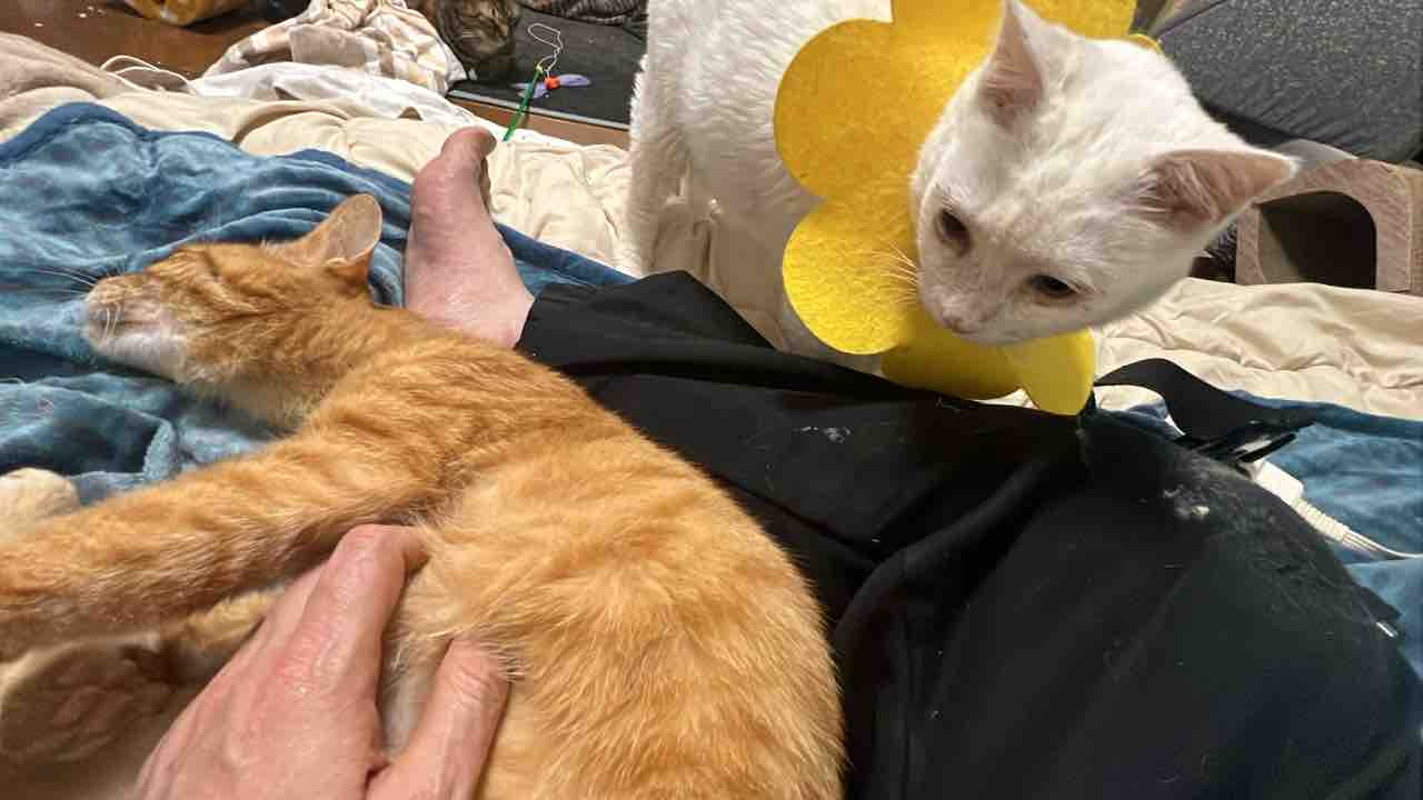 きなこもち、ずるいべ。お膝をオラに譲るべ!