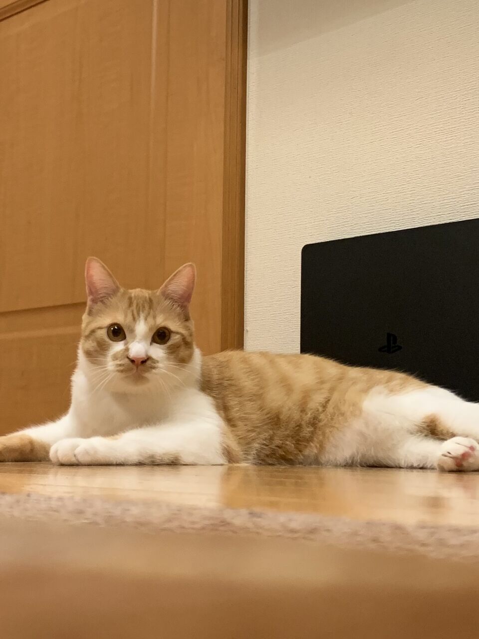 里親様の下で「幸橙(こと)」と新たな名を授かり、群馬一族の卒業生と全く同じく骨格が太くでっかい猫に育てて頂きました。なにしろ7kg。魅惑のコロッケボディです。
