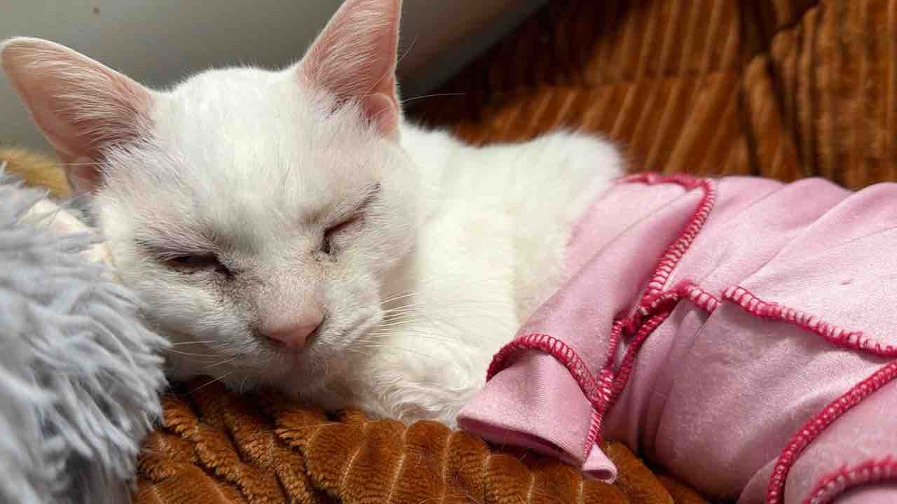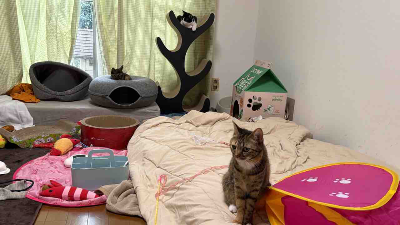 子猫の運動量にすっかりついていけなくなった麿白先生です。