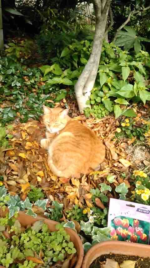 陽に当たりながら枯葉の上で眠るのが好きだったという釿汰。