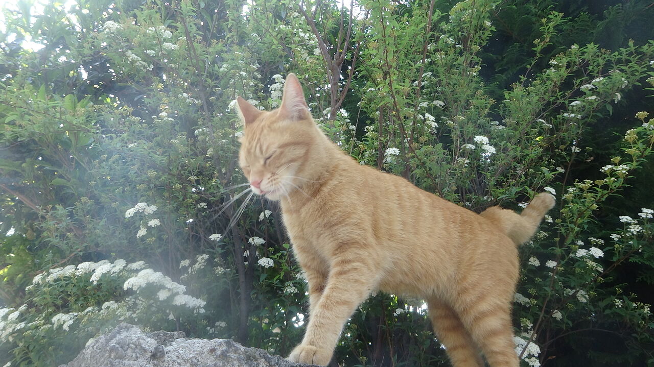 縞柄の猫は加齢とともに毛色が濃くなるのが大半で、釿汰も若い頃は薄い茶トラでよく陽の光で輝いてました。