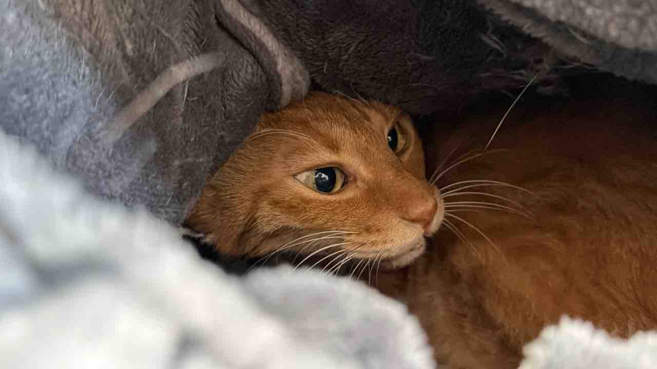 10月で暑さがひと段落した後はクッションにこもらずになぜか部屋の隅やラグの中にこもってしまいました。更に気温が下がったのでホカペと猫こたつを用意したのですが。