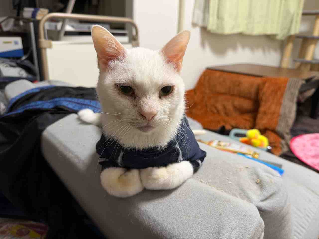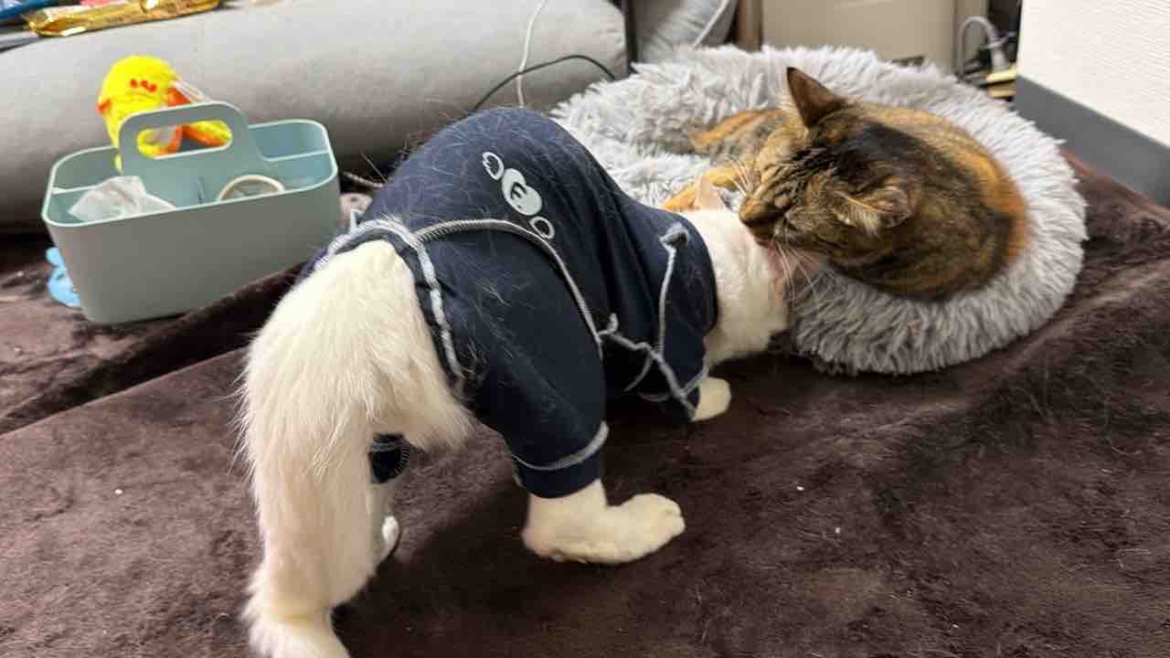 グルーミング中にもチチューにもぐるウチューネコ。
